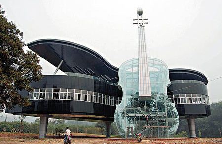 و ورودی و راه پله های آن به شکل یک ویولن بزرگ طراحی و ساخته شده است.
